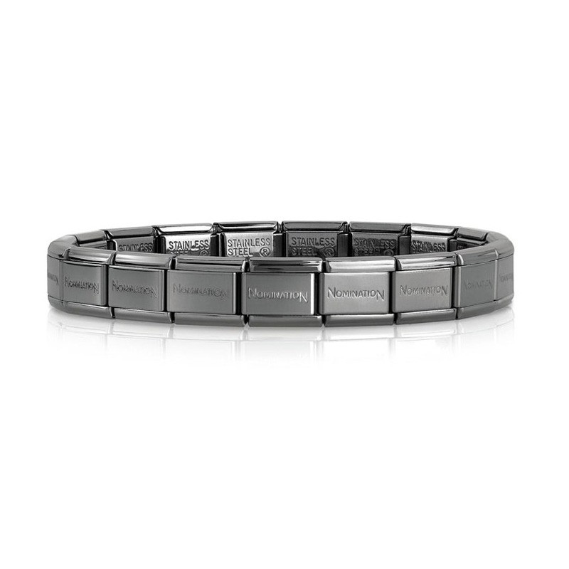 Bransoleta Nomination Gun Barrel wykonana jest ze stali szlachetnej pokrytej czarnym PVD. Powłoka PVD jest bardzo twarda i trwała. Bransoleta stanowi bazę o długości 12.5 cm składającą się z 13 elementów do tworzenia własnej kompozycji przez dodawanie kolejnych elementów Composable. Każdy element ma długość ok. 1 cm.