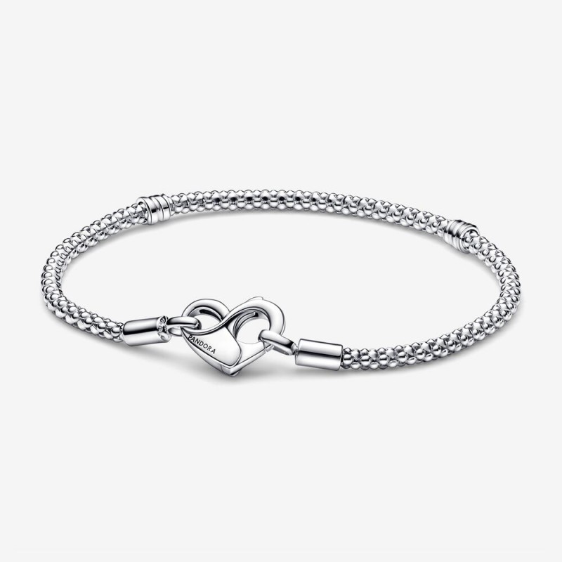 Bransoletka wężykowa Pandora Moments wykonana ze srebra składa się z elastycznego łańcuszka o ciekawej