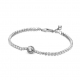 Efektowna bransoletka wykonana ze srebra. W środku zapięcia lśni jeden duży kamień w aureoli przezroczystych