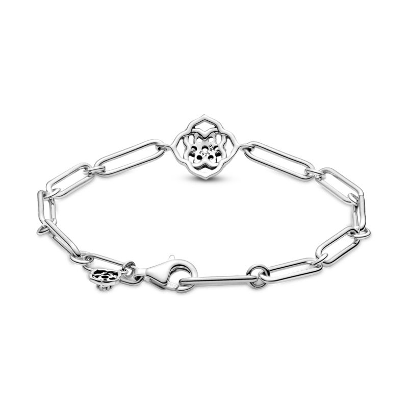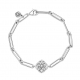 Efektowna bransoletka z płatkami róży, w środku której mieni się przezroczyste cyrkonie sześcienne. Bezpieczne zapięcie karabińczykowe chroni przed przypadkowym zgubieniem bransoletki. Podaruj ją bliskiej krewnej jako symbol miłości rodzinnej.