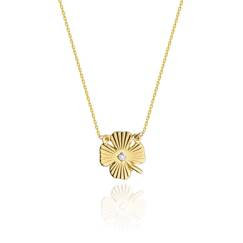 Celebrytka złota o regulowanej długości 42-45 cm przedstawiająca koniczynkę stanowi od zawsze symbol szczęścia. Tym ponadczasowym wzorem będziesz cieszyć się wiele lat. Dostępna na zmówienie zarówno w żółtym, jak i białym złocie pr. 585. Na środku koniczyny osadzono brylancik o masie 0.005 ct, o barwie H i czystości SI. Jakość brylantów potwierdza certyfikat.