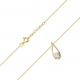 Celebrytka złota o regulowanej długości 42-45 cm w formie otwartej łezki z brylantem o masie 0.08 ct, barwie H i czystości SI. Ten naszyjnik stanowi klasyczną i elegancką ozdobę, która będzie pasować do bardzo wielu stylizacji, zarówno wieczorowych, jak i tych na co dzień. Celebrytka dostępna na zamówienie zarówno w żółtym, jak i białym złocie pr. 585. Jakość brylantów potwierdza certyfikat.