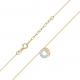 Celebrytka złota o regulowanej długości 42-45 cm przedstawiająca otwarte kółeczko z brylantami o łącznej masie 0.065 ct, barwie H i czystości SI to bardzo modny wzór ostatnich miesięcy. Jest ponadczasowa i elegancka, dzięki temu będzie pasować do bardzo wielu stylizacji zarówno na co dzień, jak i tych wieczorowych. Celebrytka dostępna na zamówienie zarówno w żółtym, jak i białym złocie pr. 585. Jakość brylantów potwierdza certyfikat.