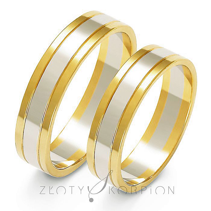 Obrączki ślubne dwukolorowe o szerokości 5 mm i płaskim profilu zewnętrznym - A-204