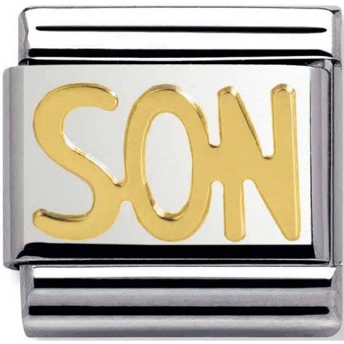 Zawieszka Nomination wykonana ze stali szlachetnej i ozdobiona złotem próby 750 z napisem SON.
