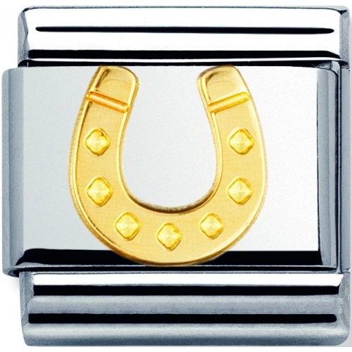 Zawieszka Nomination wykonana ze stali szlachetnej i ozdobiona złotem próby 750 .