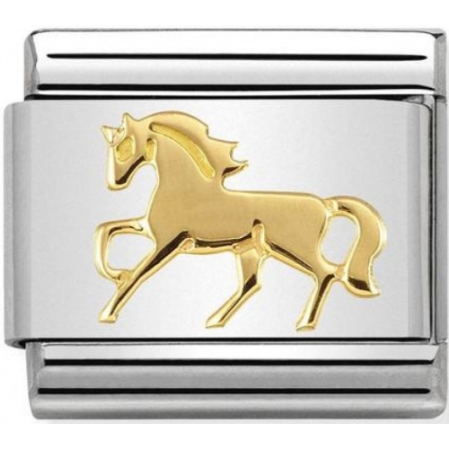 Zawieszka Nomination wykonana ze stali szlachetnej i ozdobiona złotem próby 750 .