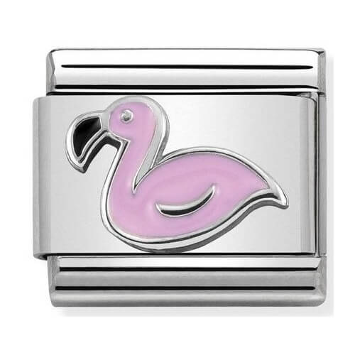 Element Nomination "Flaming" wykonany ze stali szlachetnej oraz srebra próby 925 ozdobionego różową emalią.