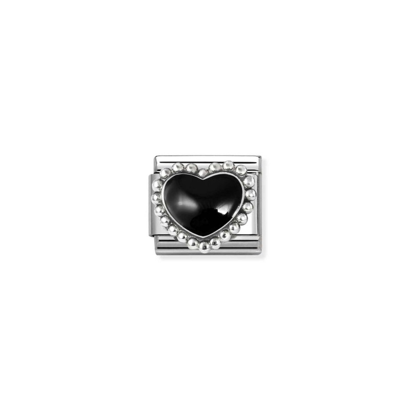 Element Nomination "Czarne serce" wykonany ze stali szlachetnej, srebra próby 925 i emalii.