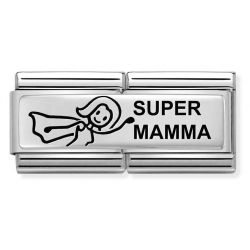 Podwójny element Nomination  "Super mamma" wykonany ze stali szlachetnej oraz srebra próby 925.
