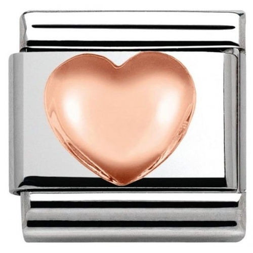 Element Nomination Wypukłe Serce wykonany ze stali szlachetnej oraz 9-cio karatowego różowego złota.