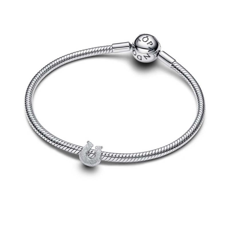 Ten srebrny charms w kształcie podkowy, ozdobiony techniką diamentowej mozaiki, która nadaje mu teksturę, będzie szczęśliwym dodatkiem do Twojej kolekcji.