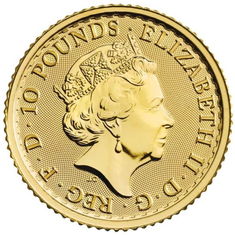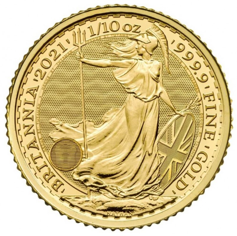 Moneta Britannia 1/10 oz (3,11 g) - bita przez Królewską Mennicę Wielkiej Brytanii. To jedna z najstarszych mennic na Świecie. Moneta ma wartośc nominalną j 50 GBP.