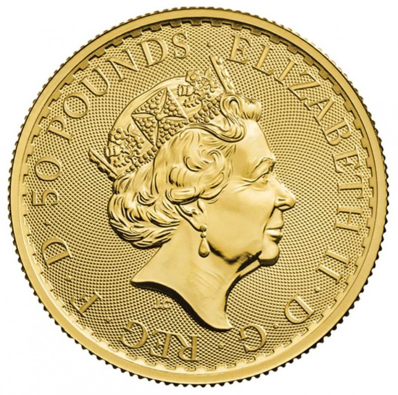 Moneta Britannia 1/2 oz (15.55 g) - bita przez Królewską Mennicę Wielkiej Brytanii. To jedna z najstarszych mennic na Świecie. Moneta ma wartośc nominalną j 50 GBP.