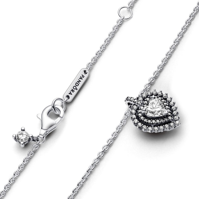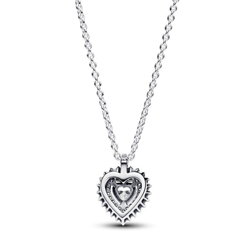 W centralnym punkcie tego eleganckiego srebrnego naszyjnika lśni