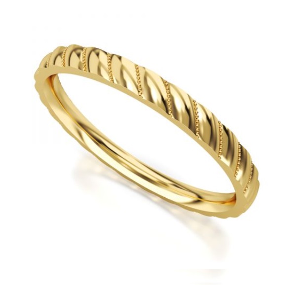 Obrączka damska/pierścionek z żółtego złota o szerokości 2,2  mm i wysokości 2 mm z ozdobnym grawerem na obwodzie.