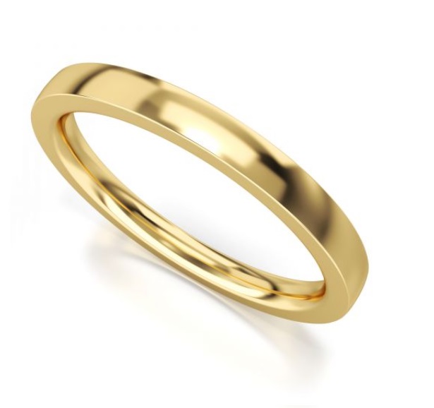 Obrączka damska/pierścionek z żółtego złota o szerokości 2,2  mm i wysokości 2 mm.