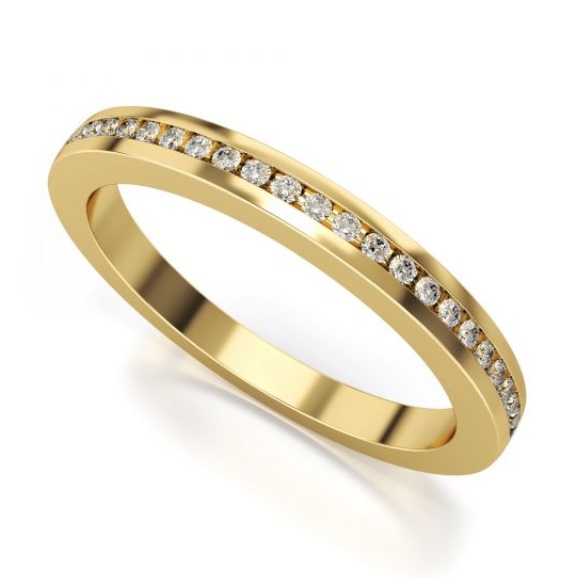 Obrączka damska/pierścionek z żółtego złota o szerokości 2,2  mm i wysokości 2 mm ozdobione kamieniami na obwodzie.