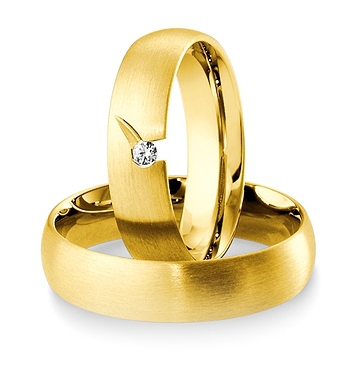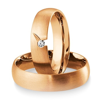 Eleganckie klasyczne obrączki z kolekcji INSPIRATION największego europejskiego producenta biżuterii ślubnej - firmę Breuning. Na szczególną uwagę zasługuje oryginalna oprawa brylantu o masie 0.035 ct kolorze W i czystości SI. Cena jest pary obrączek jest mocno zróżnicowana w zależności od próby złota: 333, 375, 585 i 750 oraz jego koloru: żółty, biały i różowy.