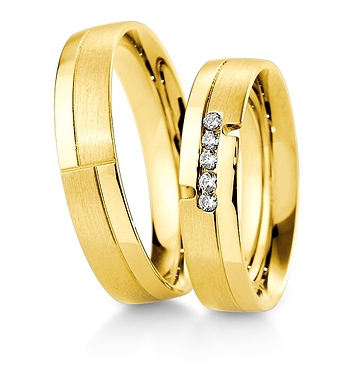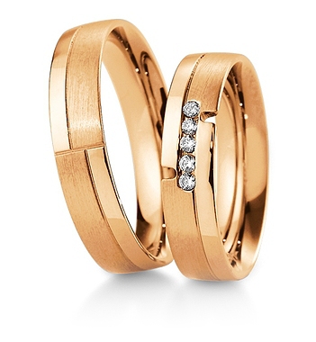 Ekskluzywne obrączki wykonane z żółtego lub różowego złota. W damskiej obrączce oprawiono 5 sztuk brylantów o masie 0.02 ct każdy o kolorze W i czystości SI. Cena jest zróżnicowana w zależności od próby złota: 333, 375, 585 i 750 oraz jego koloru: żółty, biały i różowy. Firma Breuning jest liderem w produkcji biżuterii ślubnej w Europie.