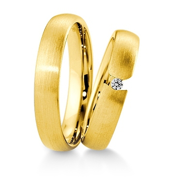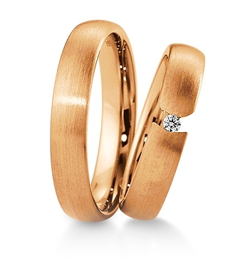 Ekskluzywne obrączki o klasycznym kształcie wykonane z żółtego lub różowego złota. Obrączce damskiej dodaje uroku ciekawie oprawiony brylant o masie 0.04 ct o kolorze W i czystości SI. Cena biżuterii jest mocno zróżnicowana w zależności od próby złota: 333, 375, 585 i 750 oraz jego koloru: żółty, biały i różowy. Firma Breuning należy do czołowych producentów biżuterii ślubnej na Świeci a ich wyroby nie mają sobie równych.