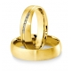 Interesujące złote obrączki ślubne z wytoczonym po linii śrubowej rowkiem, w którym w wersji damskiej oprawiono 7 brylantów o łącznej masie 0.084 ct. W zaprezentowanym modelu powierzchnia jest matowana, ale można również zamówić wersję polerowaną. Szerokość obrączki w wersji podstawowej wynosi 5.5 mm, ale można zamówić inną.