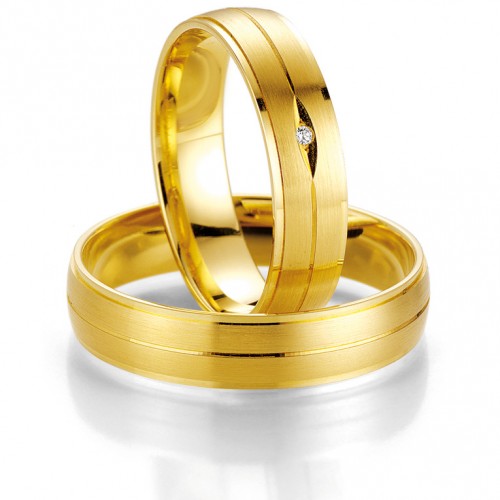 Obrączki z kolekcji SmartLine model 7015 firmy Breuning wykonane z żółtego złota w technologii bezszwowej. W damskim wzorze producent proponuje oprawę pojedynczego brylantu o masie 0.010 ct barwie H i czystości SI. Można oprawić brylant o wyższej czystości.