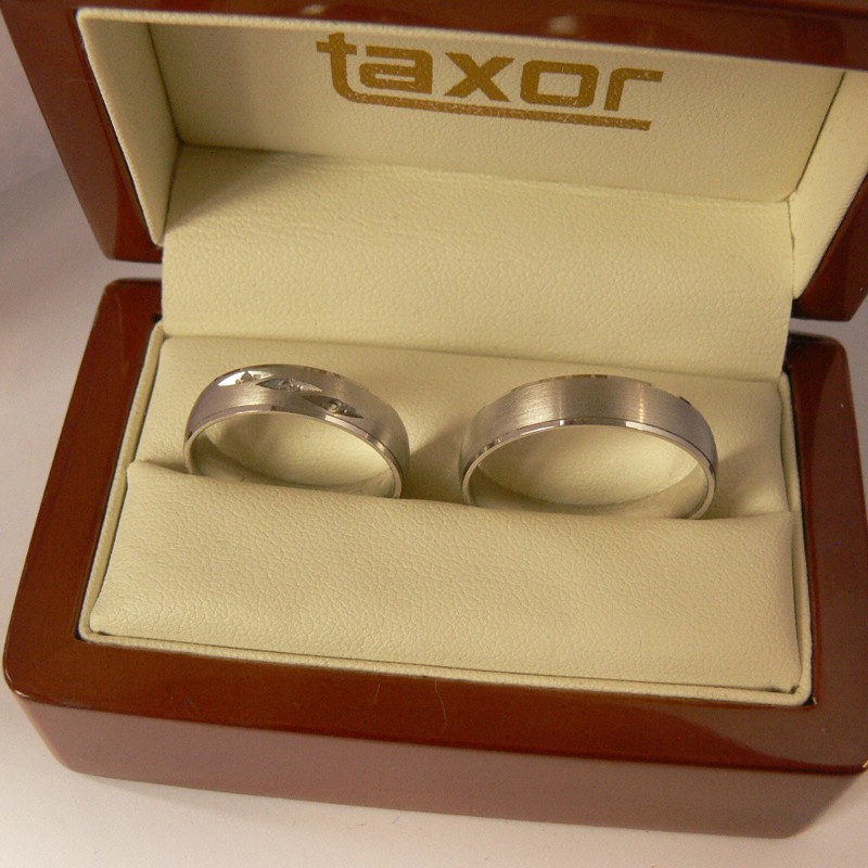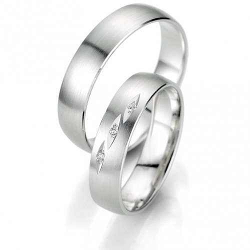 Obrączki Breuning z kolekcji Smart Line - wzór 7031 o klasycznym kształcie i szerokości 5 mm. Producent proponuje wersję z matową powierzchnią z interesującą oprawą kamieni w modelu damskim. Brylanty H/SI o łącznej masie 0,03 ct oprawione w polerowanych wgłębieniach o kształcie łezki prezentują się doskonale. Ten model tak jak pozostałe jest wykonany w najnowosześniejszej technologii bezszwowej.