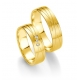Obrączki z żółtego złota o szerokości 5.5 mm z kolekcji Smart Line firmy Breuning wzór 7083 wykonane w technologii bezszwowej. Ciekawy model wykonany z matowanego złota, a wydrążony wzór z polerowanego złota. W obrączce damskiej można oprawić trzy lub więcej brylantów o łącznej masie 0.03 ct barwie H i czystości SI.