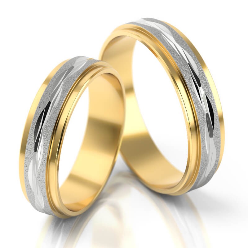 W wersji standardowej szerokość obrączek wynosi 5 mm, ale na życzenie dostępna jest szerokość 4 lub 6 mm. W ten sposób np. obrączka męska może być szersza od damskiej. Można również zmienić kolor złota i rodzaj matu. W tym modelu nie oprawiamy kamieni. Istnieje też możliwość zwiększenia wagi obrączek i wykonania tego wzoru w wersji bardziej masywnej.*