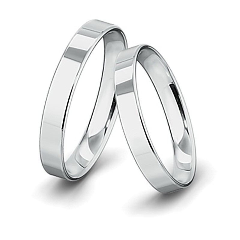 Klasyczne obrączki o szerokości 4 mm i płaskim profilu wykonane z platyny próby 950 w technologii bezszwowej.