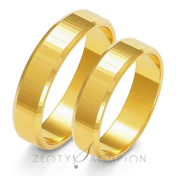 Obrączki ślubne o płaskim profilu fazowane z obydwu stron mają efektownie błyszczącą diamentowaną powierzchnię . Wykonywane są najczęściej ze złota próby 585, ale jest możliwość zamówienia tańszej wersji w próbie 333 (8 karat). Technologia bezszwowa gwarantuje najwyższe parametry jakościowe a soczewka wewnątrz profilu zapewnia niezwykłą wygodę noszenia. Takiej obrączki praktycznie nie czuć na palcu. Na zdjęciu prezentujemy ten wzór z żółtego złota, ale wykonany z różowego lub białego złota prezentuje się równie pięknie. Obrączki można obejrzeć i przymierzyć w naszych salonach jubilerskich.