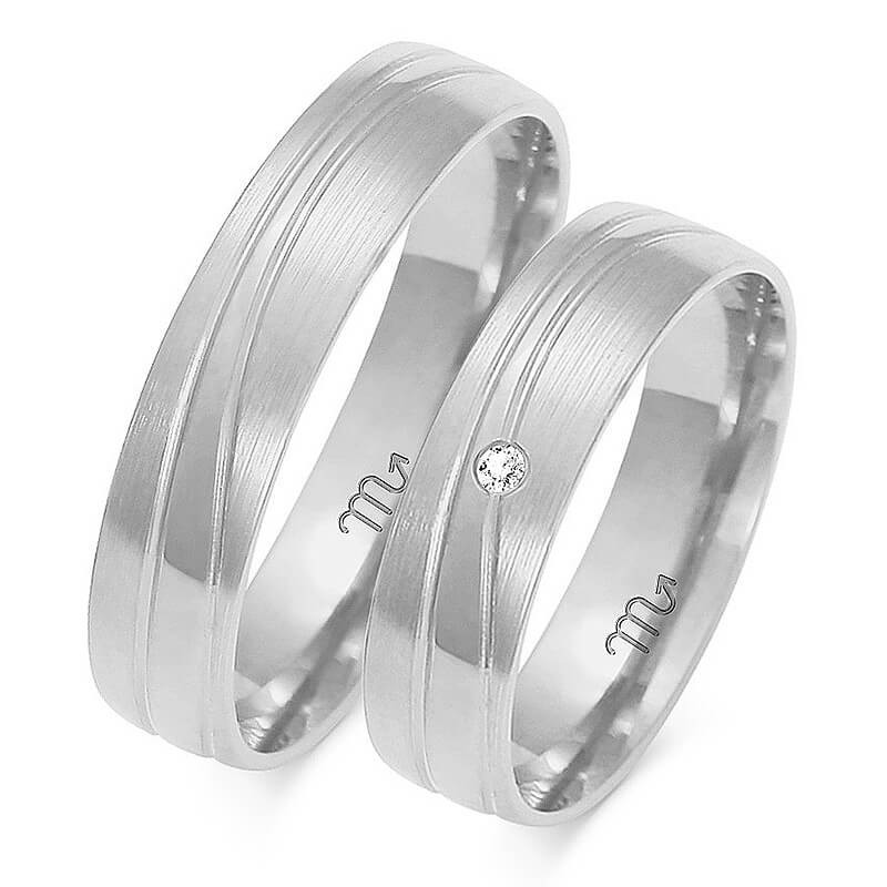 Obrączki ślubne o lekko wypukłym profilu zewnętrznym z efektownym zdobieniem w postaci naciętych na powierzchni rowków. Producent proponuje powierzchnie w części polerowaną a w części matowaną, ale możliwe jest również wypolerowanie obrączek w całości. W modelu damskim można oprawić cyrkonię lub brylant. Biżuteria z białego złota dostępna jest wyłącznie w próbie 585. Bardziej wymagającym klientom proponujemy wersję z białego złota palladowego. Jest to szlachetniejszy stop o pięknym białym kolorze nie zawierający w swym składzie niklu, który jest często przyczyną alergii. Dla poprawy walorów estetycznych warto całe obrączki pokryć galwanicznie warstwą rodu - szlachetnego metalu z grupy platynowców o śnieżno-białym kolorze. W przypadku biżuterii z białego złota zawsze udostępniamy taką opcję. Technologia bezszwowa gwarantuje najwyższe parametry jakościowe a soczewkowy kształt profilu wewnętrznego zapewnia niezwykłą wygodę noszenia. Takiej obrączki praktycznie nie czuć na palcu. Ten sam wzór wykonany z żółtego złota prezentuje się równie pięknie. Obrączki można obejrzeć i przymierzyć w naszych salonach jubilerskich.