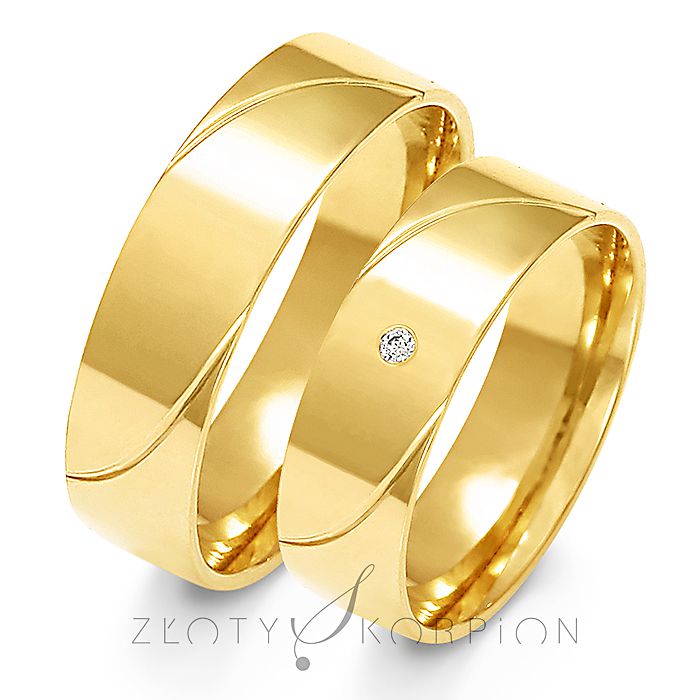 Obrączki o ponadczasowym prostym kształcie wykonane z żółtego lub różowego złota cieszą się od lat dużym powodzeniem. W modelu damskim producent proponuje oprawienie cyrkonii Swarovsky Sygnity lub brylantu 0,015 ct o barwie H i czystości SI. Wyoblenie (soczewka) od wewnątrz pierścienia czyni obrączkę znacznie wygodniejszą w noszeniu. Większość naszych klientów wybiera właśnie taką wersję. Grawerunek jest bezpłatny. Raczej nie powinien przekraczać 23 znaków.