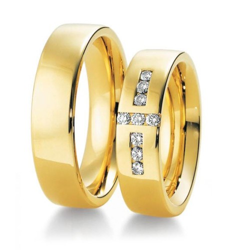 Obrączki jednokolorowe z różowego lub żółtego złota o szerokości 6 mm z ekskluzywnej kolekcji Premium firmy Breuning wzór 3130 wykonane w technologii bezszwowej. W wykonaniu standardowym powierzchnia obrączki jest polerowana, ale nic nie stoi na przeszkodzie, aby zamówić wersję matowaną. matowa. W modelu damskim producent proponuje oprawienie w ciekawy sposób dziewięciu brylantów o łącznej masie 0.27 ct, barwie H i czystości Si. co czyni obrączkę niezwykle oryginalną.