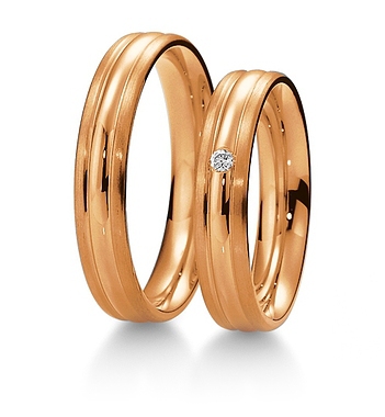 Doskonałej jakości obrączki Breuning z kolekcji BASIC wzór 4017 wykonane w technologii bezszwowej. Prosty ponadczasowy wzór ozdobiony jest dwoma symetrycznymi rowkami naciętymi na całym obwodzie. Klient ma do wyboru są trzy kolory złota: żółty, różowy lub biały. W damskiej obrączce zaprezentowano oprawiony brylant o czystości Si i barwie W (H). Ilość kamieni można zmienić.