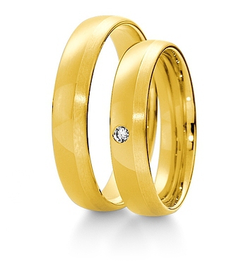 Jednokolorowe obrączki Breuning wykonane w technologii bezszwowej. W obrączce damskiej oprawiony brylant.