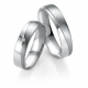 Obrączki MOONLIGHT wzór 7163 wykonane są z białego i czarnego złota w technologii bezszwowej. Firma Breuning stworzyła kolekcję Moonlight w odpowiedzi na duże zainteresowanie kolekcją Black & White, jednak zaprezentowane tu modele są delikatniejsze i subtelniejsze w formie i nieco tańsze. W zaprezentowanym wzorze powierzchnia z białego złota jest polerowana a z czarnego złota - matowana. W obrączce damskiej w wersji standardowej zaproponowano oprawę brylantu o masie 0.01 ct, barwie H i czystości SI. Można oprawić inną ilość diamentów o innych parametrach.