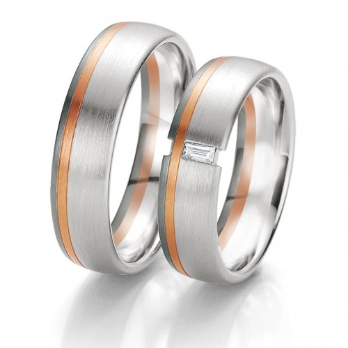 Obrączki BREUNING cechuje najwyższa jakość i perfekcja wykonania. Firma Breuning stosuje do produkcji najwyższej jakości stopy złota całkowicie pozbawione niklu. Biały kolor złota uzyskuje się przez dodatek palladu zamiast niklu. Pallad jest metalem znacznie droższym, ale nie uczula i ma śnieżno-biały kolor. Czarne złoto jest wybarwiane w całej masie. Takie złoto zachowuje kolor w czasie użytkowania i nie ma obawy, że czarna warstwa się zetrze, co zdarza się w przypadku wyrobów konkurencyjnych firm. Technologia bezszwowa zapewnia obrączkom idealny kształt i dużą wytrzymałość. Obrączka nie ma łączenia na obwodzie i można ją bez przeszkód powiększać i zmniejszać w przyszłości. Powierzchnia jest specjalnie utwardzana.