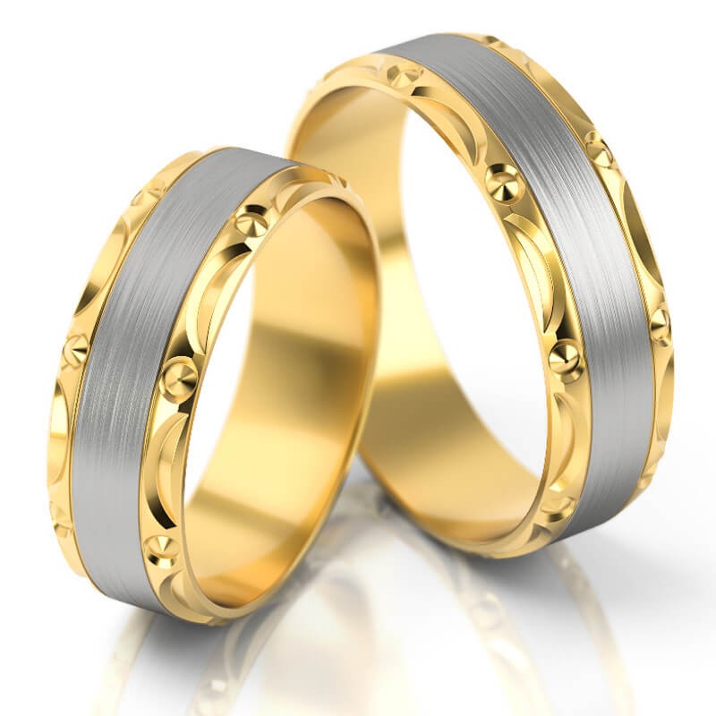 W wersji standardowej szerokość obrączek wynosi 6 mm, ale na życzenie klienta możemy zamówić w zakresie szerokości: 4 - 10 mm. W ten sposób np. obrączka męska może być szersza od damskiej. Można również zmienić kolor złota i rodzaj matu. Na życzenie oprawiamy w obrączce damskiej kamienie. Istnieje też możliwość zwiększenia wagi obrączek i wykonania tego wzoru w wersji bardziej masywnej.*