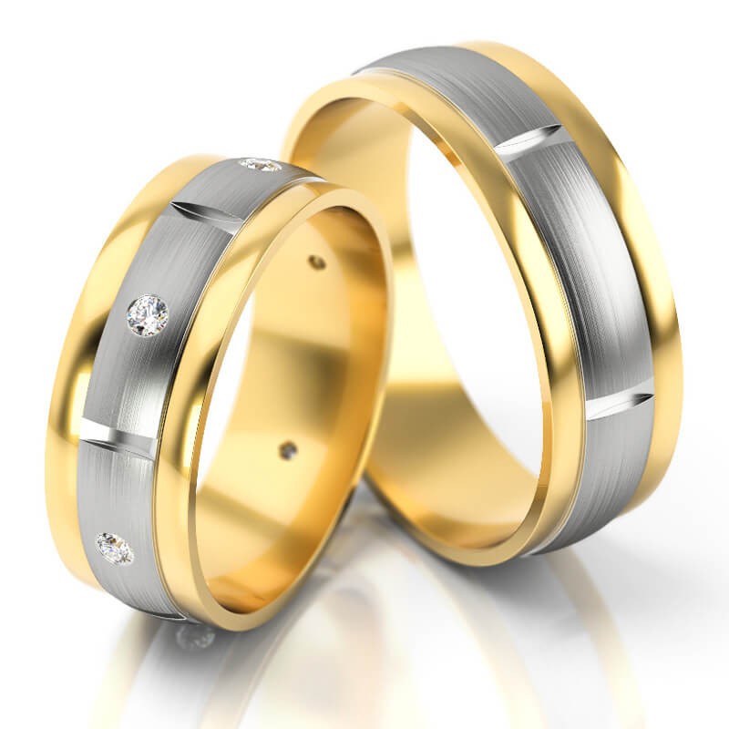 W wersji standardowej szerokość obrączek wynosi 6 mm, ale na życzenie klienta możemy zamówić w zakresie szerokości: 5 - 8 mm. W ten sposób np. obrączka męska może być szersza od damskiej. Można również zmienić kolor złota i rodzaj matu. Na życzenie oprawiamy w obrączce damskiej kamienie - brylanty lub cyrkonie. Istnieje też możliwość zwiększenia wagi obrączek i wykonania tego wzoru w wersji bardziej masywnej.*