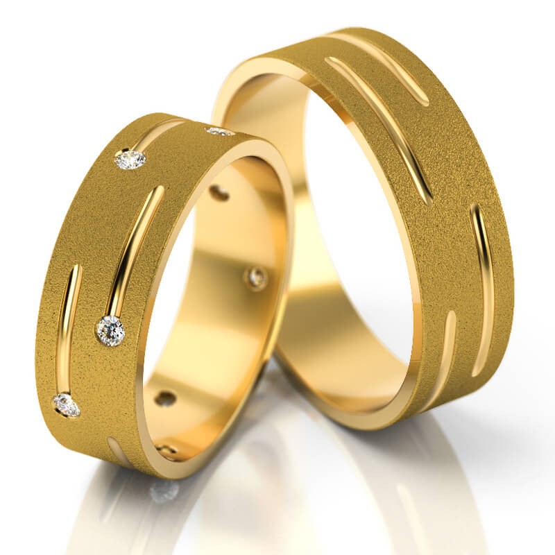 W wersji standardowej szerokość obrączek wynosi 6 mm, ale na życzenie klienta możemy zamówić w zakresie szerokości: 5 - 10 mm. W ten sposób np. obrączka męska może być szersza od damskiej. Można również zmienić kolor złota i rodzaj matu. Na życzenie oprawiamy w obrączce damskiej kamienie. Istnieje też możliwość zwiększenia wagi obrączek i wykonania tego wzoru w wersji bardziej masywnej.*