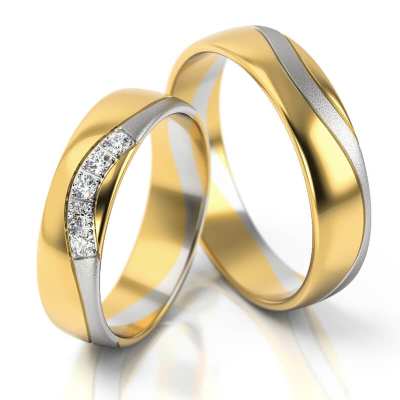 Obrączki są dość masywne - wysokość profilu wynosi 1.6 mm.  Technologia bezszwowa gwarantuje najwyższą jakość wyrobów. Takie obrączki  charakteryzują się zdecydowanie większą wytrzymałością i trwałością od produkowanych tradycyjnie. Standardowa szerokość w przypadku tego modelu wynosi 5 mm ale producent przewiduje ewentualne poszerzenie do 6 mm. Białe złoto jest matowane, a pozostała część obrączki polerowana, co zwiększa kontrast i nadaje obrączkom szczególnego charakteru. W naszej ocenie w takim wykonaniu wyglądają bardzo korzystnie, ale oczywiście można zamówić je w wersji w całości wypolerowanej. Obrączki mogą być wykonane ze złota w różnych próbach, ale z pełnym przekonaniem polecamy próbę 585 (14 karat), jako optymalną dla tego rodzaju wyrobów jubilerskich. Białe złoto można dodatkowo galwanicznie porodować uzyskując efekt śnieżnej bieli. Każdą obrączkę można zamówić w wersji komfortowej z wyobleniem (soczewką). Taka obrączka jest wygodniejsza w użytkowaniu. Doskonale dopasowuje się do palca. Wyoblenie zapewnia również lepszy dopływ powietrza pod obrączkę zapobiegając poceniu się skóry.