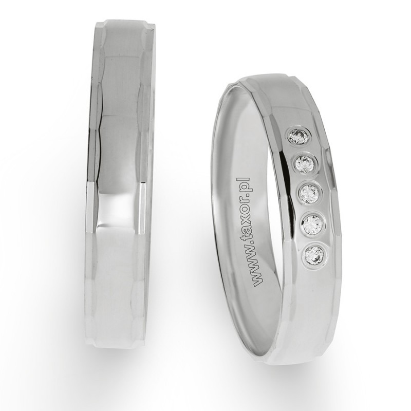 Obrączki z kolekcji EUFORIA cieszą się dużym powodzeniem ze względu na atrakcyjną cenę, ponadczasowy prosty kształt oraz soczewkowy kształt profilu od wewnątrz, co znacznie poprawia komfort noszenia. W damskiej obrączce można oprawić cyrkonie lub brylanty. Używamy brylantów o barwie H i czystości Si. Ich liczba zależy od upodobań klienta. Powierzchnia obrączek może być polerowana lub matowana. Standardowo szerokość wynosi 4 mm, ale producent umożliwia zmianę tego parametru. Można również zamówić wersję masywniejszą zwiększając wysokości profilu (grubość).