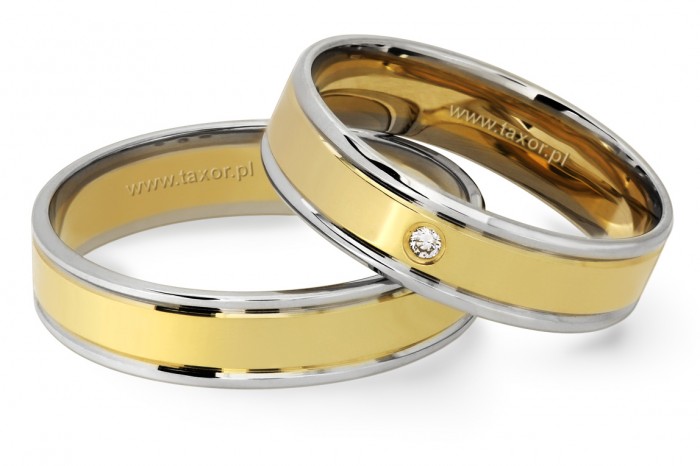 Bardzo proste i eleganckie obrączki dwukolorowe o szerokości 5 mm wykonane w technologii bezszwowej. Ten ponadczasowy wzór cieszy się dużym powodzeniem. Środkowy pierścień z żółtego złota obramowany po bokach białym złotem wygląda bardzo efektownie. Powierzchnia polerowana.