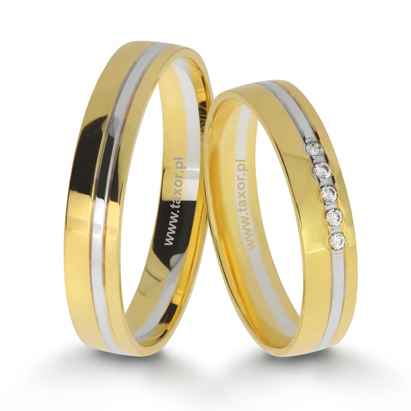 Obrączki z dwóch kolorów złota z kolekcji SYMFONIA firmy ZIRKON wzór H-79-L wykonane w technologii bezszwowej. Każdy model z tej kolekcji jest wyoblony od strony wewnętrznej.