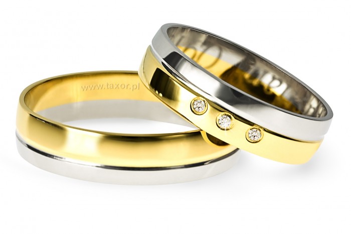 Dwukolorowe obrączki o szerokości 5 mm wykonane z białego i żółtego złota w technologii bezszwowej. Powierzchnia polerowana. Różnej szerokości pierścienie z żółtego i białego złota oddziela nacięty na całym obwodzie rowek. Ten ponadczasowy wzór cieszy się dużym powodzeniem podobnie jak L-014. W odróżnieniu od tego modelu pierścień z białego złota jest węższy.