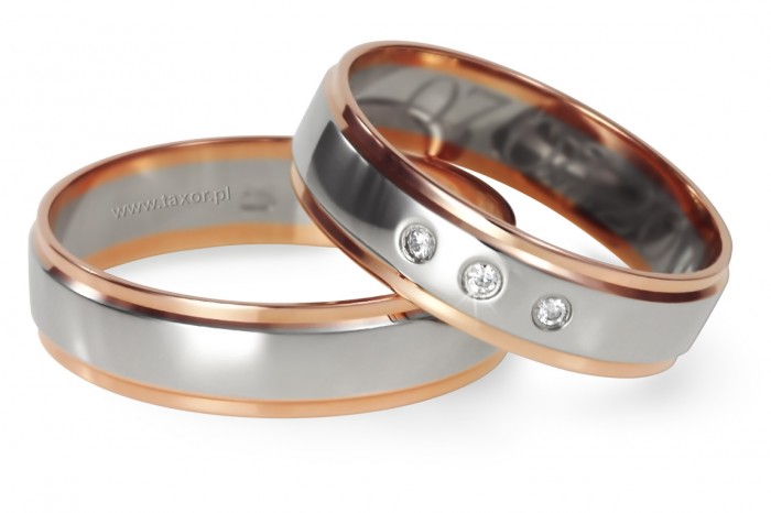 Obrączki wykonywane są metodą walcowania na zimno z wcześniej przygotowanych krążków złota. W przeciwieństwie do obrączek produkowanych metodą tradycyjną taka obrączka nie ma łączenia na obwodzie. Taka technologia zapewnia obrączce idealny kształt, wysoką trwałość oraz możliwość korekty rozmiaru obrączki w przyszłości bez obawy pęknięcia. Elementy łączone są metodą spiekania w wysokiej temperaturze. Spoina jest niewidoczna, idealnie równa i bardzo wytrzymała.  Na życzenie klienta można zmienić kolory złota. Można w dowolnej konfiguracji użyć koloru żółtego, białego i różowego. Środkowy pierścień może być matowy. W przypadku chęci dokonania zmian proszę kliknąć link "zapytaj o produkt" i przekazać nam swoje sugestie. Sprawdzimy szybko czy proponowane zmiany są możliwe i dokonamy wyceny.