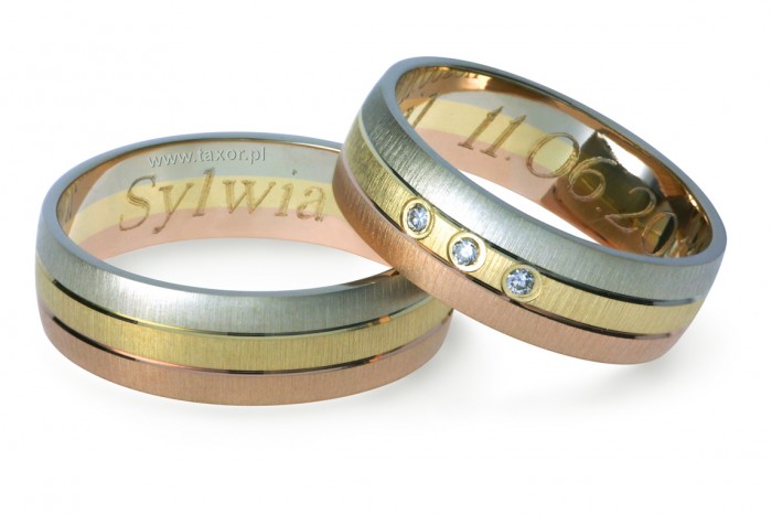 Oryginalne obrączki z trójkolorowego złota o szer. 6 mm wykonane w technologii bezszwowej. Ten wzór od lat niezmiennie cieszy się dużym powodzeniem. Powierzchnia matowa, ale równie ciekawie wygląda w wersji polerowanej. W obrączce damskiej można oprawić kamienie.