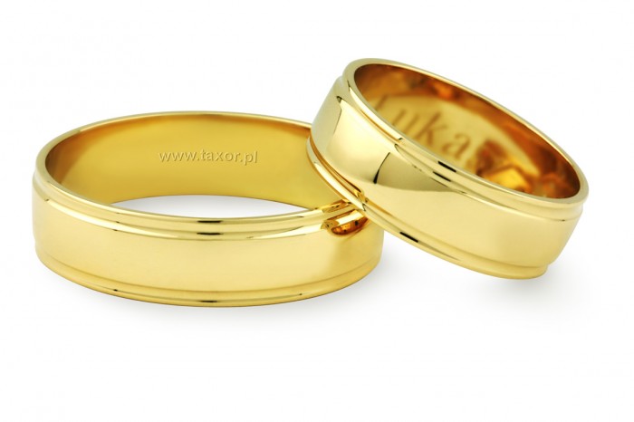 Ponadczasowe, klasyczne, jednokolorowe obrączki o szerokości 6 mm wykonane z żółtego złota w technologii bezszwowej. W obrączce damskiej można oprawić do 9 szt kamieni.